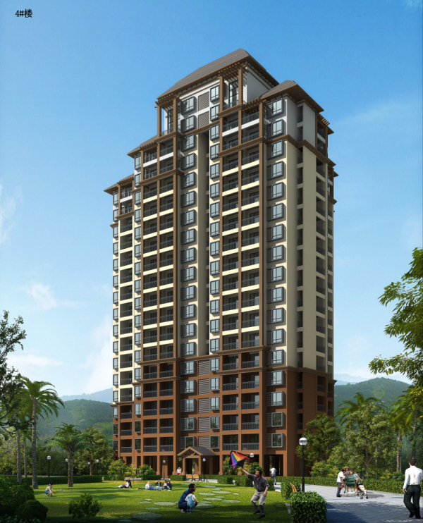 永庆湾总占地70亩,总建筑面积约95158㎡,目前开发的是第一期,由5幢集住宅、酒店式公寓、商业步行街组成。容积率1.5,建筑密度10%,绿化率42%,围合式布局,楼间距宽达90-300米。内部配有室内外双泳池,公寓首层布置小区配套商业,局部做架空处理。其余楼栋首层都做架空处理,用作公共休闲娱乐空间。