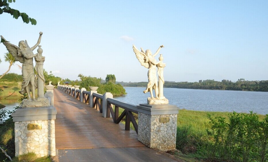 南国威尼斯城位于海口市琼山区云龙镇,项目用地规划用地总面积为89.834公顷(合1347.5亩),南临南渡江支流三十六曲溪,西侧与省级公路云定公路贴邻,其余两侧均为种植林地,整个地块南北宽约990米,东西长约1200米,用地形状较为规整。地块内地势北高南低,北侧约有近半用地较为平坦,逐渐向南侧及东南侧坡向至水边,属于较好开发的丘陵地带。